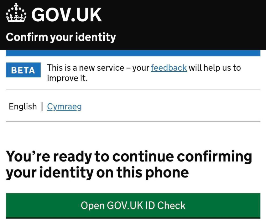 Click Open GOV.UK ID Check to start ID verification.