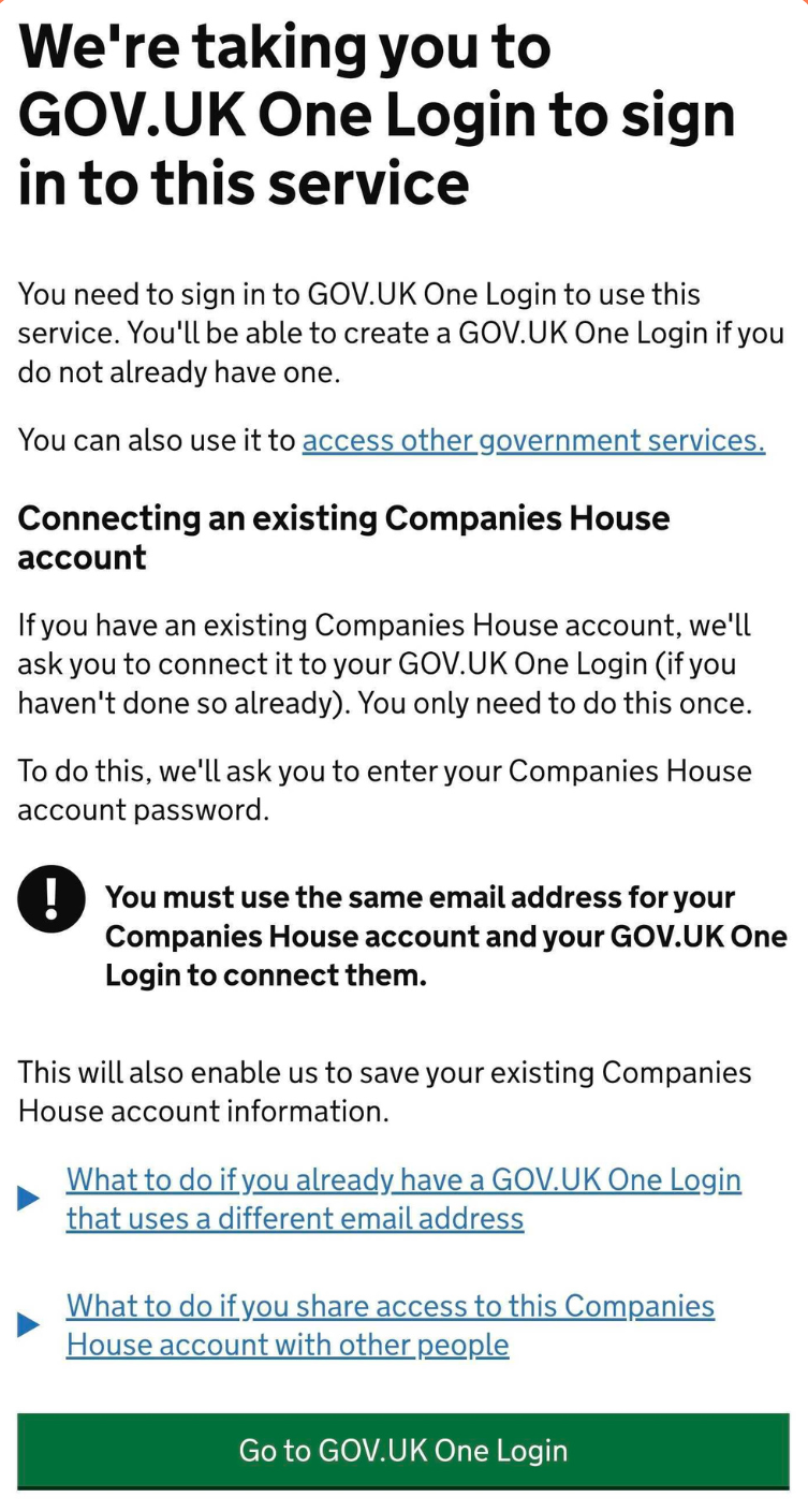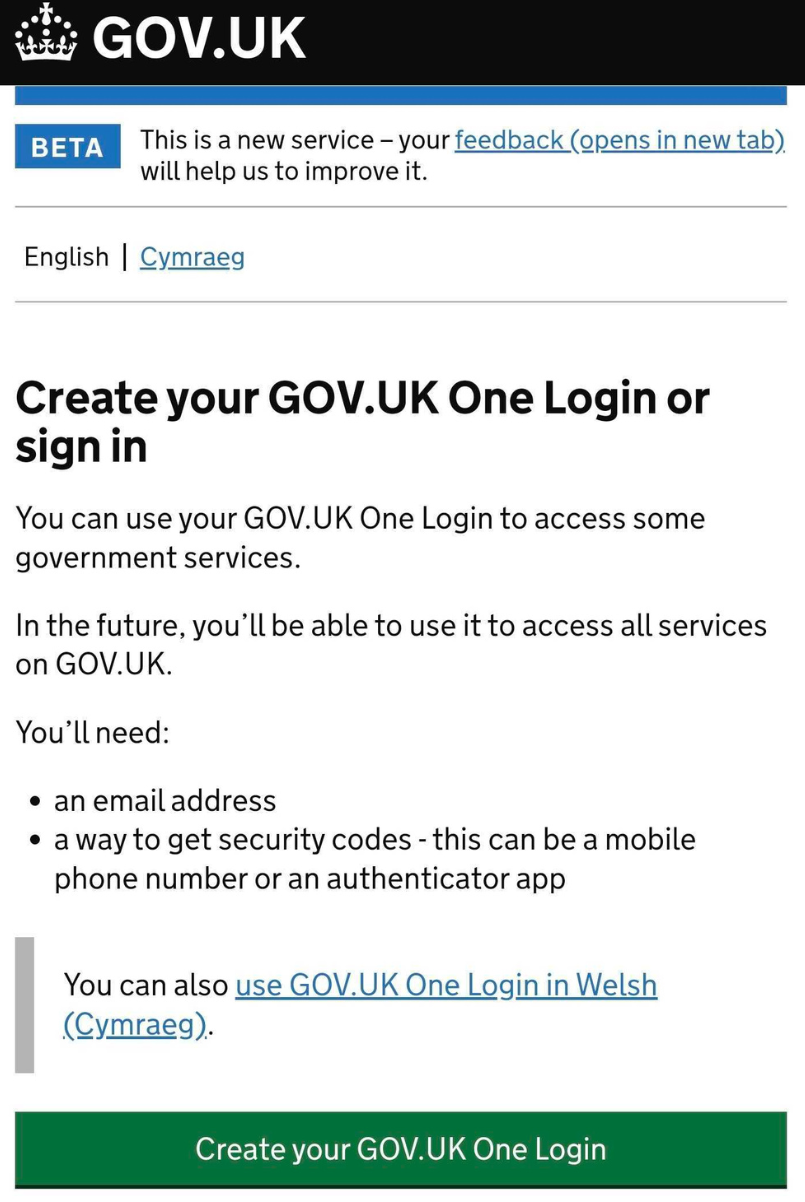 Click Go to GOV.UK One login.