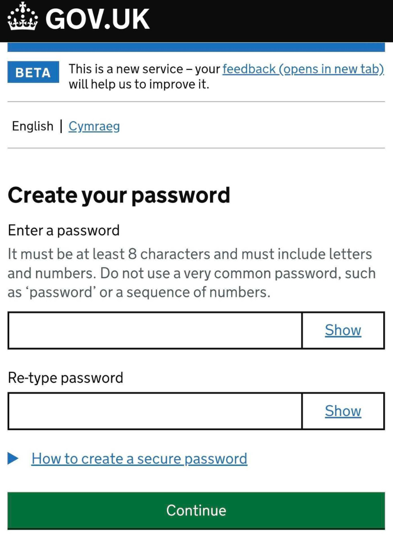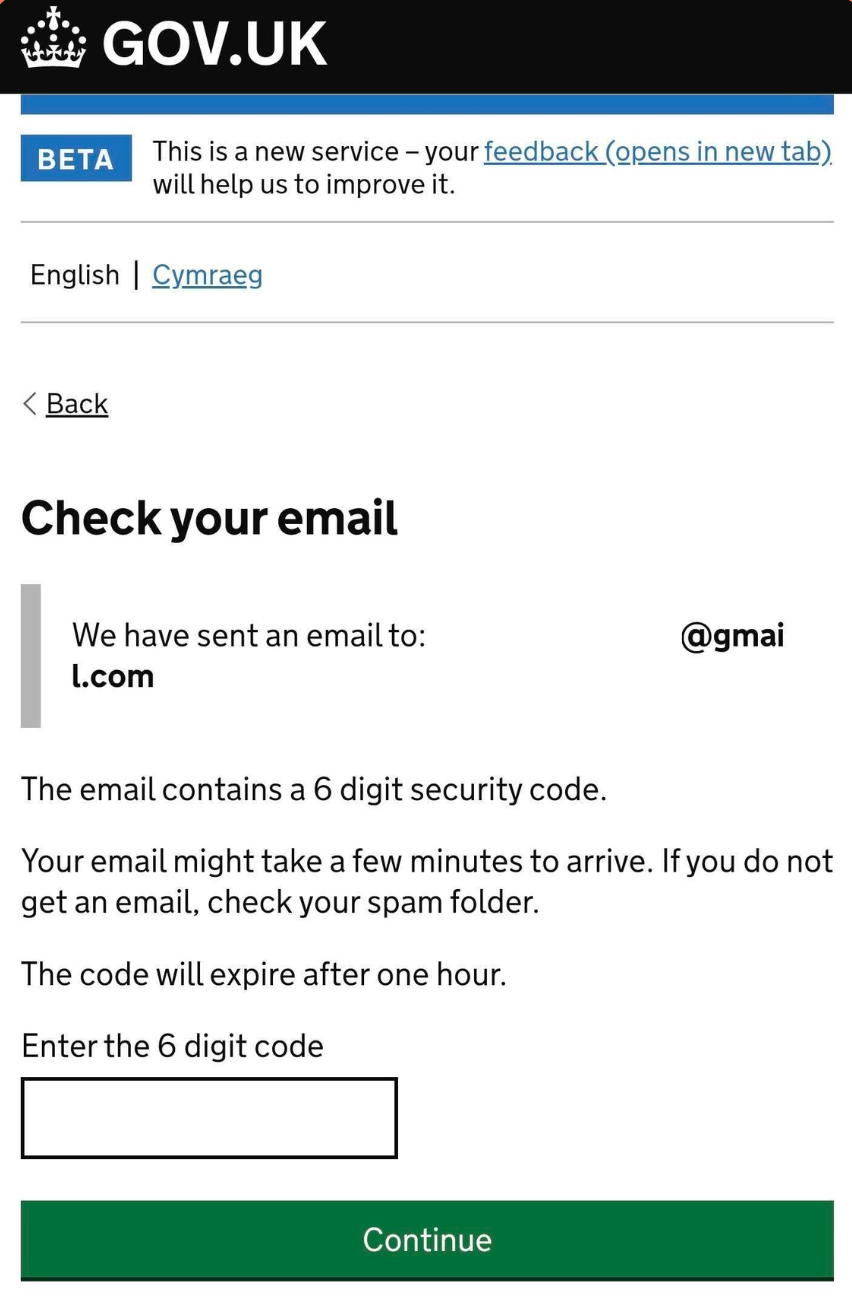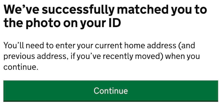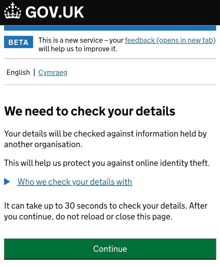 Click Continue to allow GOV.UK to check your details.