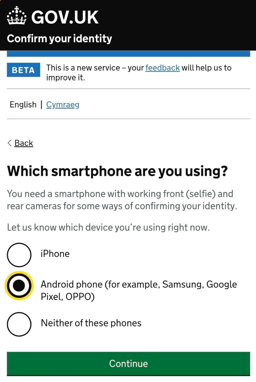Confirm you have the correct ID to hand and select Continue.