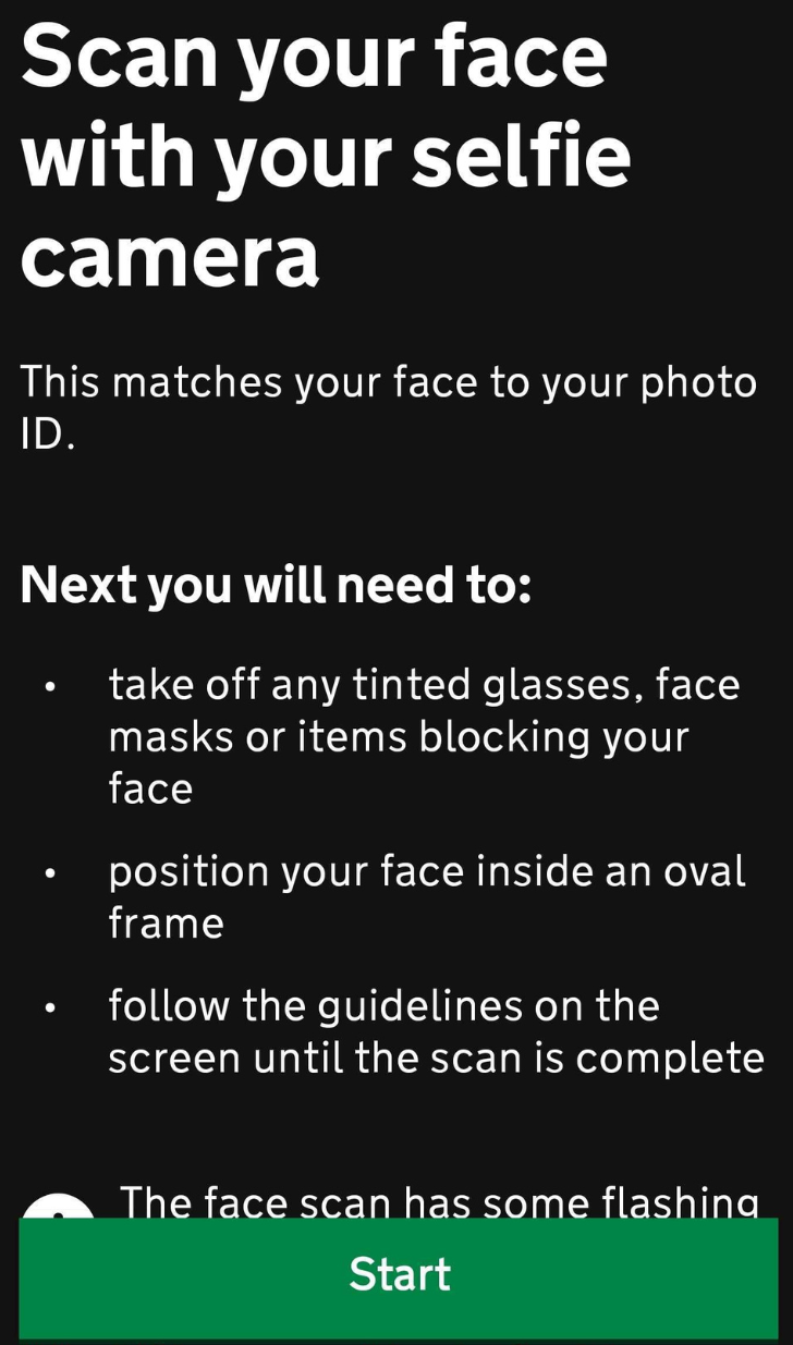 For the final step, click Start to scan your face with your phone camera.