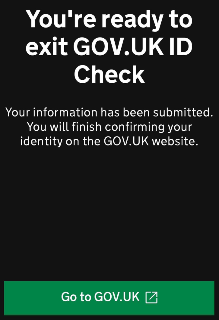 When you’re finished exit the app by clicking Go to GOV.UK.