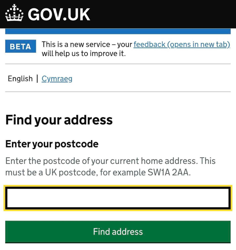 Fill in your postcode to Find your address.